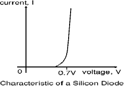 Electricity uses up a little energy pushing its way through the diode, rather like a person pushing through a door with a spring. This means that there is a small voltage across a conducting diode, it is called the forward voltage drop and is about 0.7V for all normal diodes which are made from silicon. The forward voltage drop of a diode is almost constant whatever the current passing through the diode so they have a very steep characteristic (current-voltage graph).