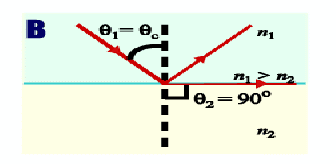 the angle of refraction is 90 o . All the light passes along the interface between the two materials.