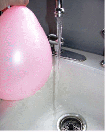 If you turn a television on and touch the screen, the screen feels as though it has a film of some sort over it. The tv screen is charged. It has an excess of electron. Many materials accumulate charge in this way. If for example you rub a balloon on your clothes, you may cause electrons to pass from one to the other. If you then hold the balloon close to running tap water, you may cause it to deflect in the way shown below.